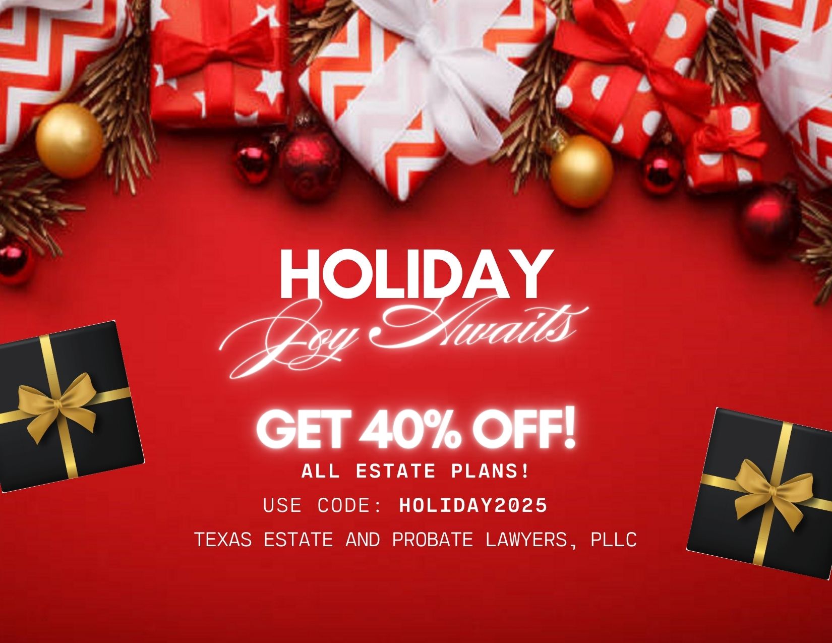 HOLIDAY SPECIAL OFFER 40% OFF ALL ESTATE PLANS! - ENDS DEC. 31ST >>>